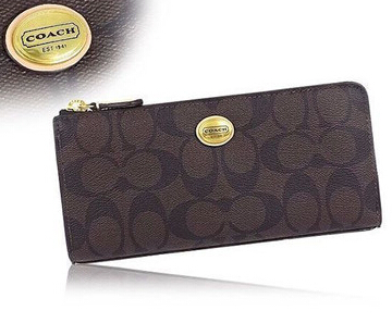 コーチ COACH長財布 F50174 ブラウン×タン ペイトン シグネチャー スリム ジップ アウトレット